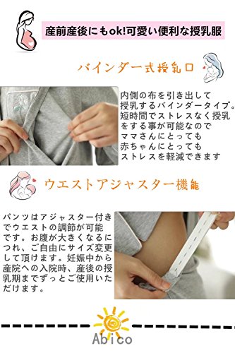 - 【特徴】ウエストアジャスター機能で、臨月から産後もずっとご着用頂ける優秀デザイン。ボトムのウエストゴムと同じタイプのアジャスターが付いていて、出産前後の激しいサイズ変化にも対応します。