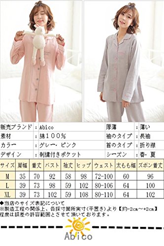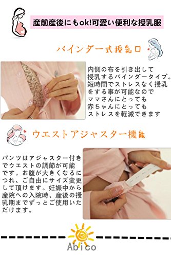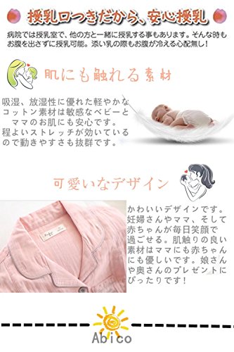 (アビコ)ABICO マタニティ パジャマ 春夏 おしゃれ 刺繍 無地 薄い 長袖 折り襟 綿 授乳服 授乳口付き ウエスト調節 通気性良い 産前 産後 妊婦 前開き