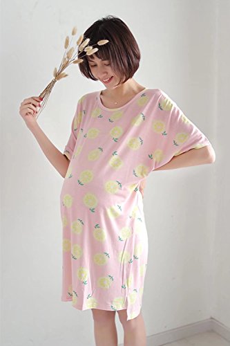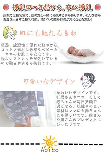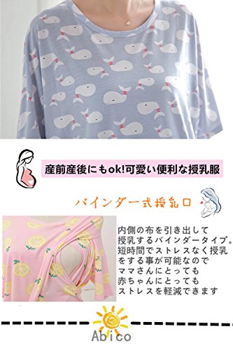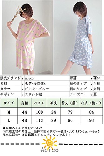 (アビコ)ABICO 夏 マタニティ ワンピース パジャマ 可愛い プリント 半袖 薄い 丸首 モダ-ル綿 授乳服 授乳口付き チュニック 肌触り良い 産前 産後 妊婦服 通気性良い