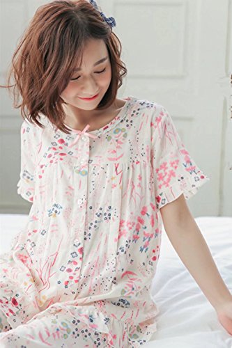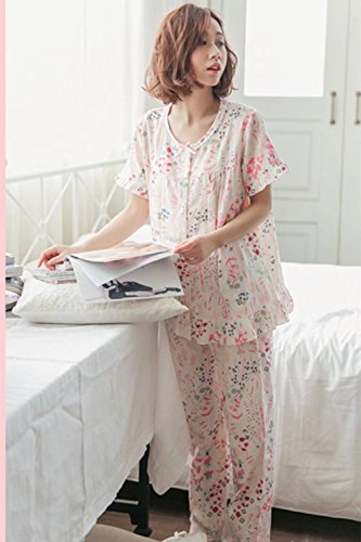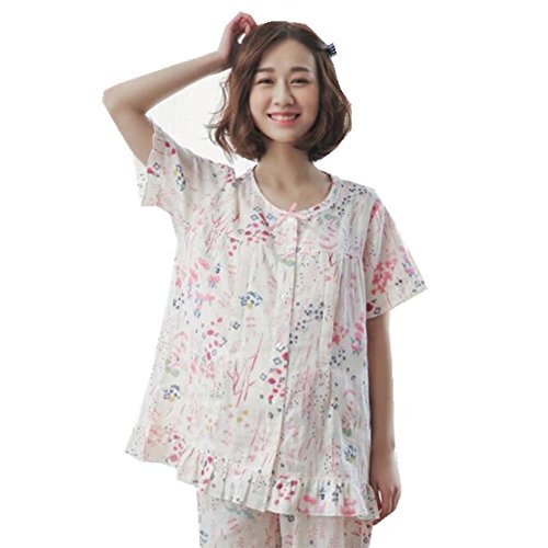[アビコ]ABICO 春夏 マタニティ パジャマ きれいめ 前開き 丸首 花柄 長袖 半袖 2重ガーゼ 薄い 授乳服 授乳口付き ウエスト調節 妊婦服 産前 産後 ルームウェア