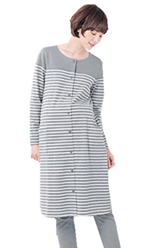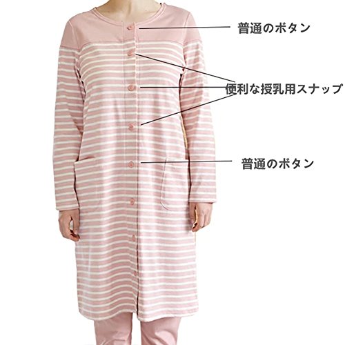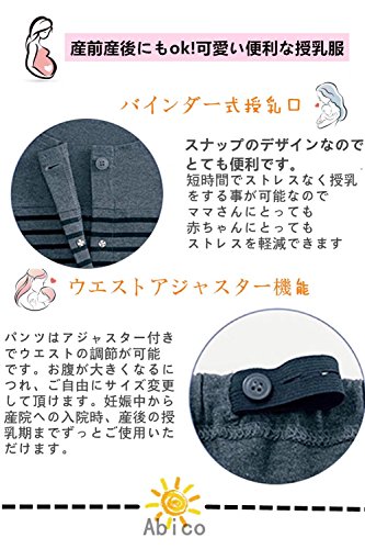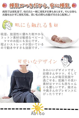 [アビコ]ABICO マタニティ パジャマ ベーシック ロング丈 前開き 丸首 ボーダー柄 コットン 長袖 授乳服 授乳口付き ウエスト調節 妊婦服 産前 産後 ルームウェア オールシーズン