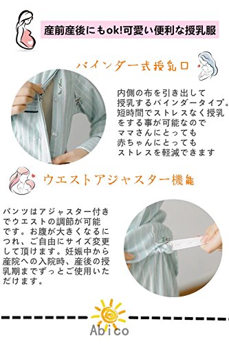 - 【特徴】マタニティパジャマには嬉しい授乳口付き。妊娠時期から産院での入院、出産後の授乳期まですっと愛用いただけます。パンツはアジャスター 付きでウエストの調節が可能ですので 妊娠期間 のすべての時期に対応できます。