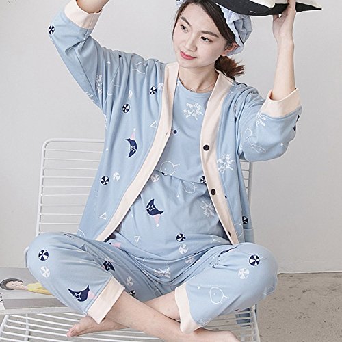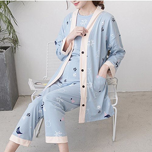 [アビコ]ABICO マタニティ パジャマ 長袖 プリント タンクトップ アウトウェア 丸首 授乳服 授乳口付き ウエスト調節 妊婦服 産前 産後 ルームウェア 3点セット