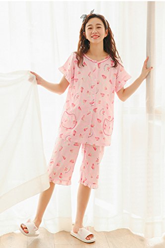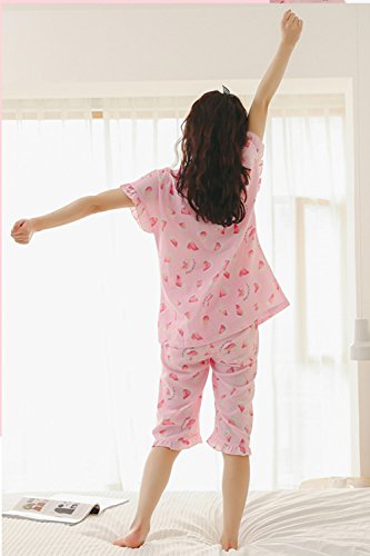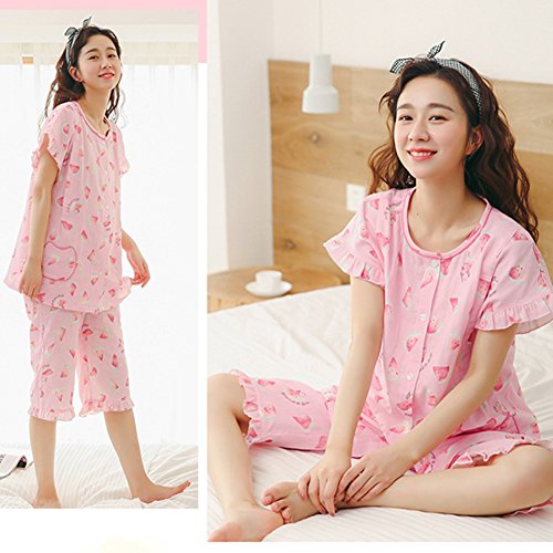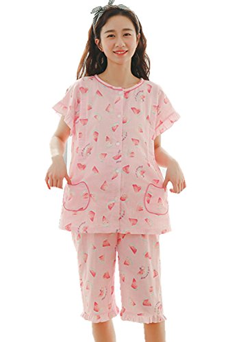 [アビコ]ABICO マタニティ パジャマ 半袖 丸首 可愛い いちごプリント ポケット付き 2重ガーゼ 綿 授乳服 授乳口付き ウエスト調節 妊婦服 産前 産後 ゆったり ルームウェア