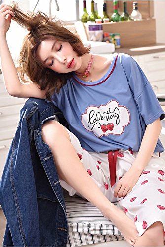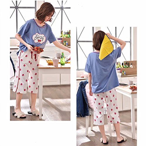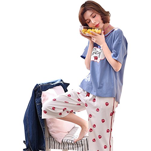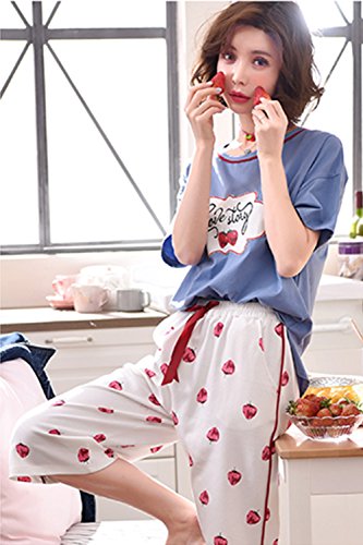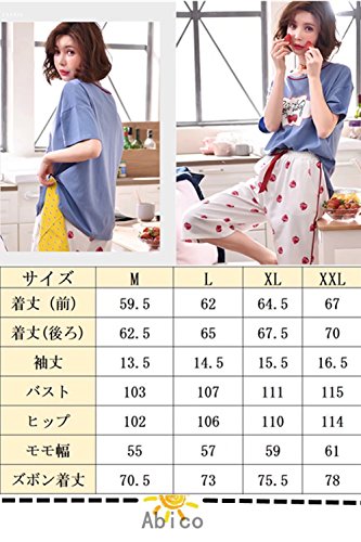 [アビコ]ABICO マタニティ パジャマ 可愛い 丸首 半袖 いちごプリント 七分丈 授乳服 授乳口付き ウエスト調節 妊婦服 産前 産後 パジャマセット