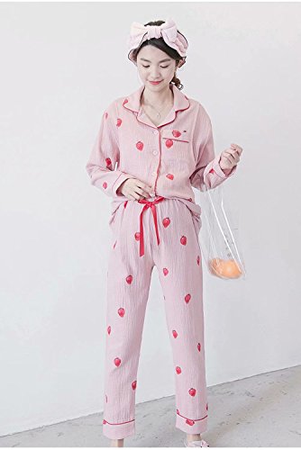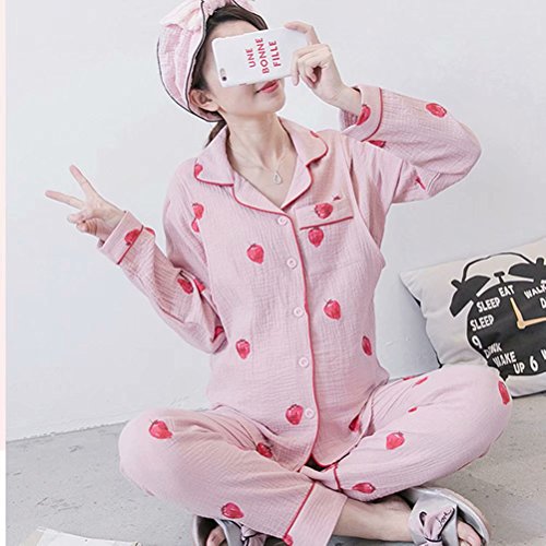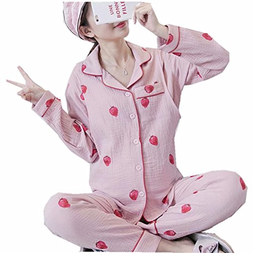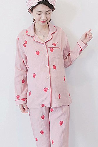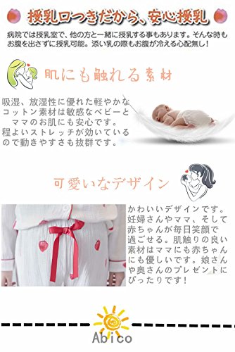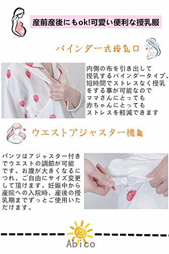 [アビコ]ABICO マタニティ パジャマ 可愛い いちごプリント 折り襟 長袖 ストラップ 2重ガーゼ 授乳服 授乳口付き ウエスト調節 妊婦服 産前 産後 パジャマセット