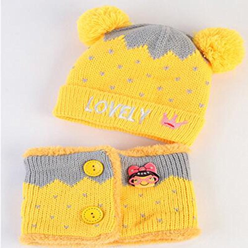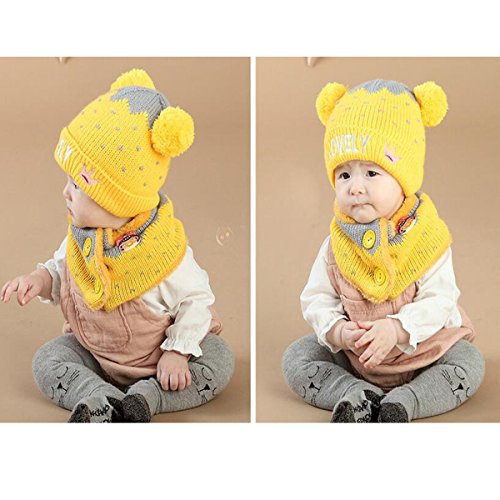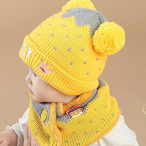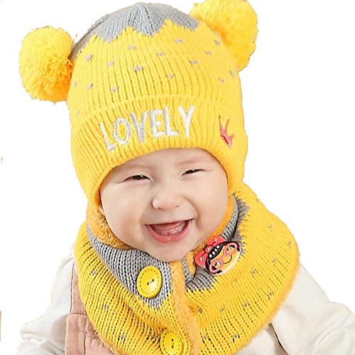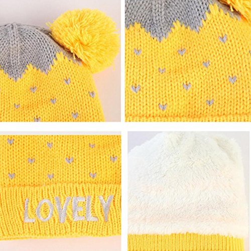 Abusun ニットキャップ ニットハット 帽子 毛糸 ベビー キッズ 赤ちゃん 子供用 耳あて かわいい 暖かい 防寒 (イエロー)