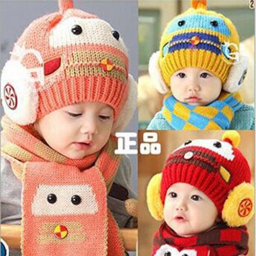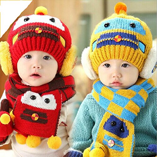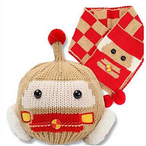 Abusun ニット帽子&マフラー ニットキャップ ハット毛糸 ベビー キッズ 赤ちゃん 子供用 かわいい 暖かい 防寒 (クリーン)