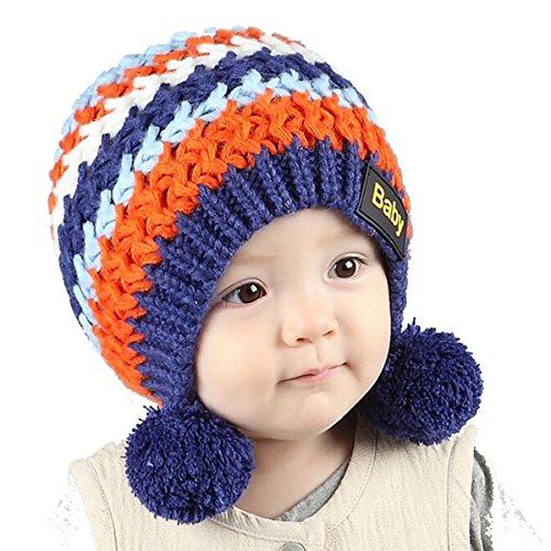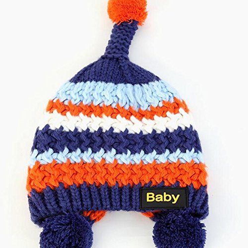 Abusun ニットキャップ ニットハット 帽子 毛糸 ベビー キッズ 赤ちゃん 子供用 耳あて かわいい 暖かい 防寒 (ブルー)