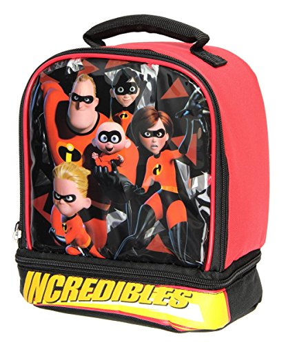 Officially Licensed Incredibles 2 Product Two separate zippered compartments for easy storage and crush proof lunches. Insulated Interior with a comfortable padded top carrying handle Vibrant Incredibles family design on front, Incredibles 2 logo on the side Reduce waste and save money by packing your kids lunch in a reusable container
