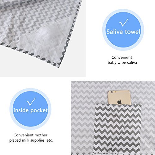 UNIQUE DESIGN- use high-grade fashion D shape adjustment lace-up, a more reasonable adjust the height of degrees. This items have the belt, and design the regulation of many, the baby grew up also won't feel the space is little open mother sneaked away. There is gauze cloth Angle pocket and cotton pocket. The Gauze can be used wipe your baby's mouth, and you can put small items into cotton pocket;COMFORT FABRIC- Soft 100% cotton breathable fabric allows you and your baby to nurse in comfort. One size fit all. It has close packing, after feeding, you can put it in the bag, it is easy to store.;VIEWING NECKLINE- Allows You To Easily View Your Baby While Nursing;SAFE & COZY Privacy For Your Baby While Nursing In Public. It is Simple To Use - easy to adjust neck strap with closed loop. Adjust and wear;MULTI-USE- 3-in-1 Cover. Baby Car Seat Cover. Nursing Cover. Shopping Cart Cover. Stretchy fabric fits most car seats, shopping carts, and nursing mothers. They are a versatile gift for any new parent, and a standby for every experienced one.