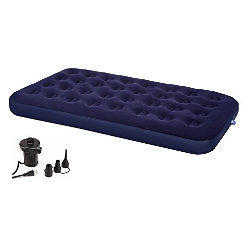 - Material: Rayon-Flocked Top, PVC Frame; Includes: Air Bed, Instruction Sheet and Repair Patch; Electric Air Pump Sold Separately