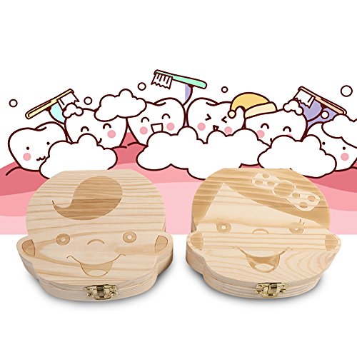 Acogedor ベビー歯保存ボックス 可愛い子供の歯ボックス 木製の乳歯ボックス 少年少女 記念 意味深い 頑丈耐久性(二つのタイプ)(A)