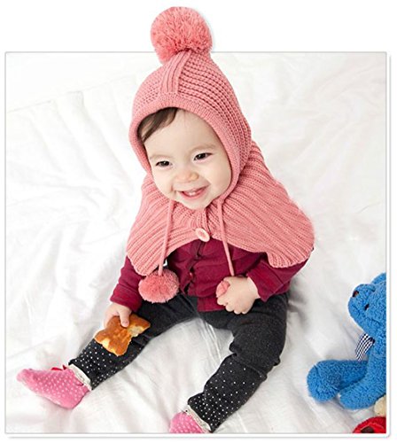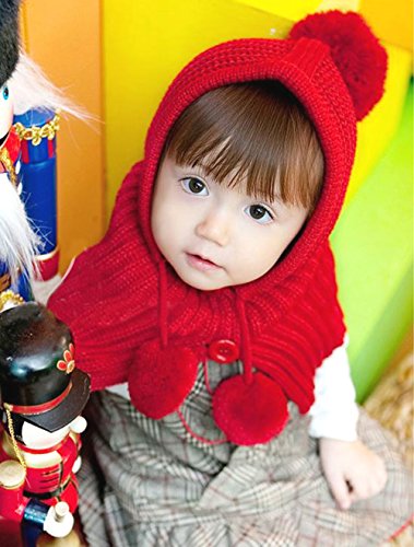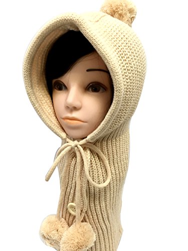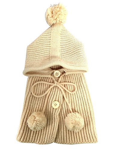 Active Island ニット帽 頭巾 ポンチョ 毛糸 ベビー 防寒着 赤ずきんちゃん ポンポン (ベージュ)