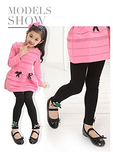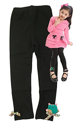 Active Island 子供用 レギンス スパッツ タイツ パンツ 猫 リボン マスコット ストレッチ キッズ ベビィー (110cm, ブラック)