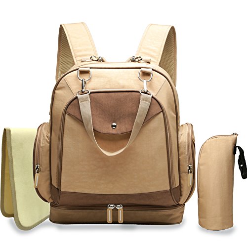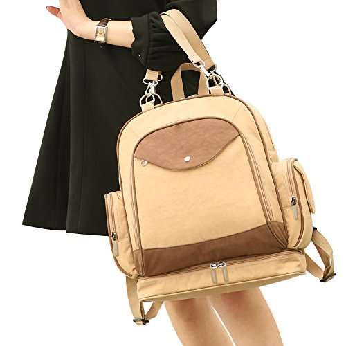 3WAY マザーズバッグ バックパック-2017 レトロ 洗浄 ライン洗濯機で洗える 大容量 多機能 防水 ベビーバッグ ママバックパック (Khaki)