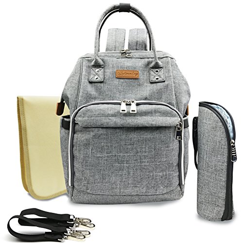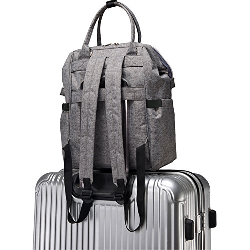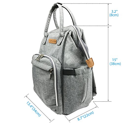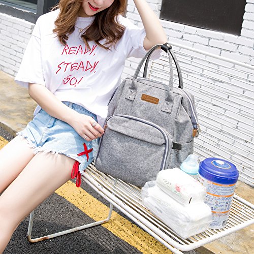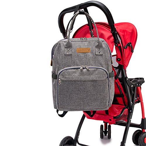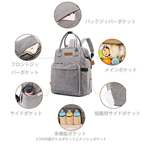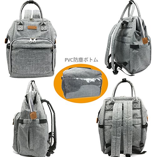 マザーズバッグ バックパック-20L 大容量 防塵 防水 おむつ袋, 含む ベビーカーストラップ, 断熱スリーブ, マットの交換 (Grey)