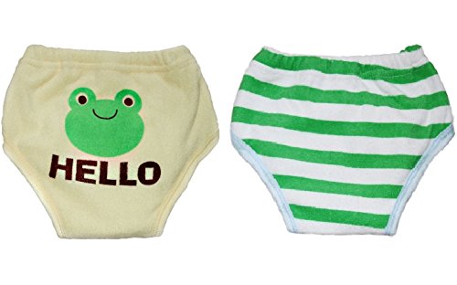 【Adamz.sp】 ベビー トレーニングパンツ 2枚組 6層 赤ちゃん トイレトレーニング (95, カエル・緑)