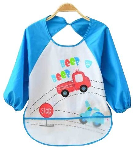 Adamz.sp 赤ちゃん 長袖 エプロン 選べる5色 防水 食べこぼしポケット 食事 ビブ スタイ ガウン スモック (ブルー)