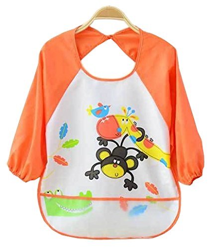 Adamz.sp 赤ちゃん 長袖 エプロン 選べる5色 防水 食べこぼしポケット 食事 ビブ スタイ ガウン スモック (オレンジ)