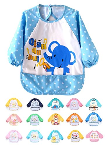 Adamz.sp 赤ちゃん ベビー 食事 エプロン 長袖 防水 食べこぼしポケット ビブ スタイ ガウン スモック 種類いっぱい (ブルー/スター/ぞう)