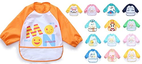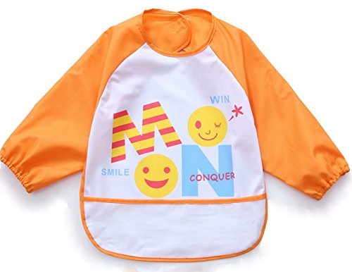 Adamz.sp 赤ちゃん 食事 エプロン 長袖 防水 食べこぼしポケット ビブ スタイ ガウン スモック 種類いっぱい (オレンジ/スマイル)