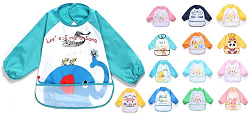 赤ちゃん ベビー 食事 エプロン 長袖 防水 食べこぼしポケット ビブ スタイ ガウン スモック 種類いっぱい
