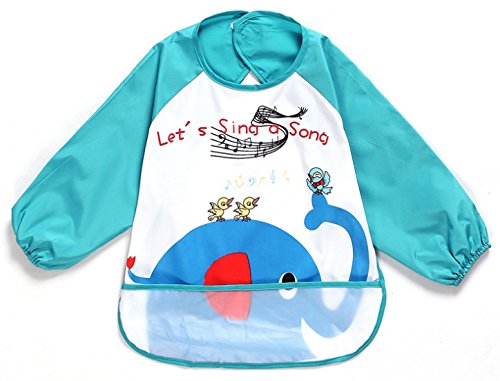 Adamz.sp 赤ちゃん 食事 エプロン 長袖 防水 食べこぼしポケット ビブ スタイ ガウン スモック 種類いっぱい (ブルー/ゾウ)