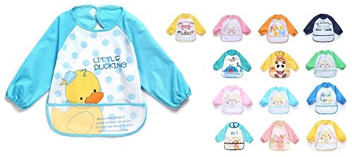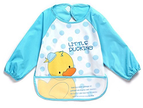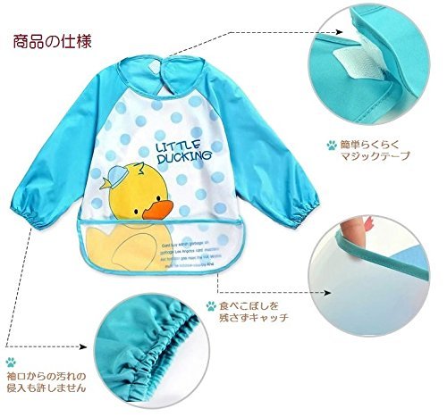 Adamz.sp 赤ちゃん 食事 エプロン 長袖 防水 食べこぼしポケット ビブ スタイ ガウン スモック 種類いっぱい (ブルー/アヒル)
