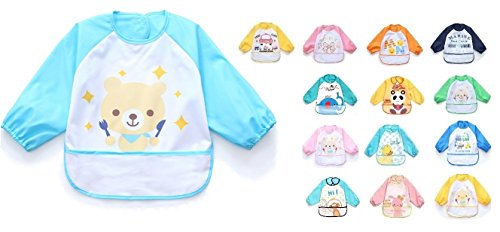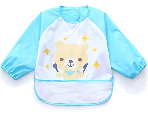 Adamz.sp 赤ちゃん 食事 エプロン 長袖 防水 食べこぼしポケット ビブ スタイ ガウン スモック 種類いっぱい (ブルー/クマ)