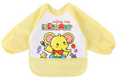 Adamz.sp 赤ちゃん ベビー 食事 エプロン 長袖 防水 食べこぼしポケット ビブ スタイ ガウン スモック 種類いっぱい (イエロー/チェック/ぞう)