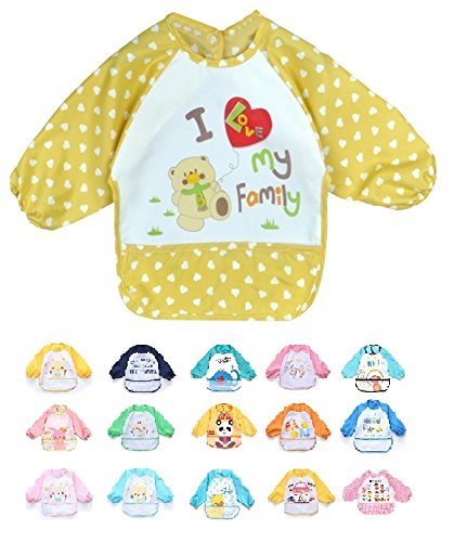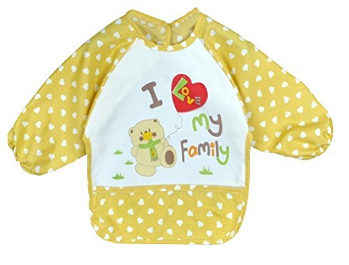 Adamz.sp 赤ちゃん ベビー 食事 エプロン 長袖 防水 食べこぼしポケット ビブ スタイ ガウン スモック 種類いっぱい (イエロー/ハート/くま)