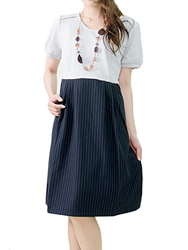 ストレッチの効いたカットソーTシャツと、ハリのあるストライプ柄のスカートがドッキングしたデザインのマタニティーワンピース。