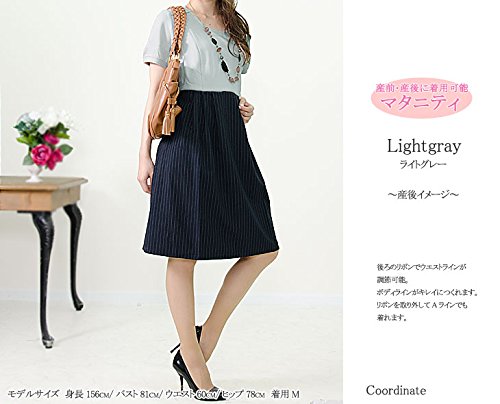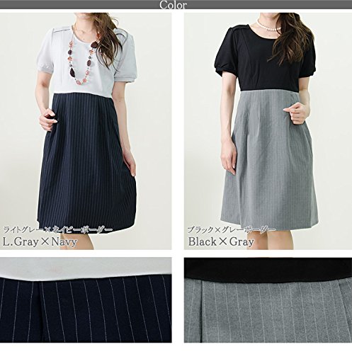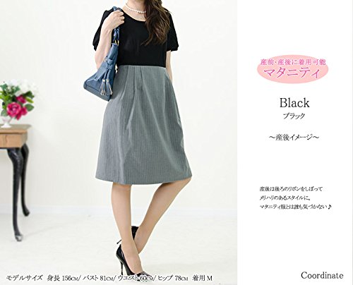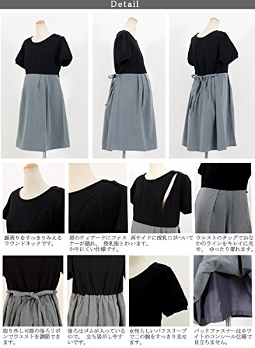 (アッドルージュ)Add Rouge 授乳口付 ウエストリボンベルト付き切替ワンピース c584242 Q1 L ブラック×グレーボーダー