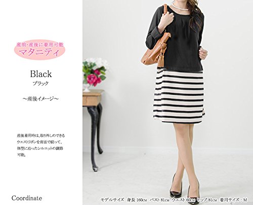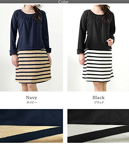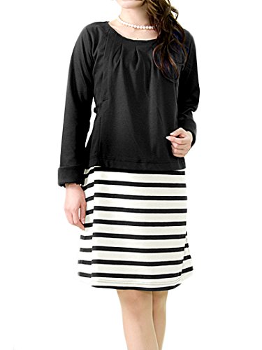 (アッドルージュ)Add Rouge 授乳口付き リップルボーダー柄切替ポンチ生地 ワンピース c584243 Q1 L ブラック