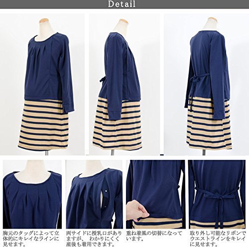 授乳口がついて妊娠中の産前・産後に使えるマタニティワンピース。デイリー、通勤に大活躍。