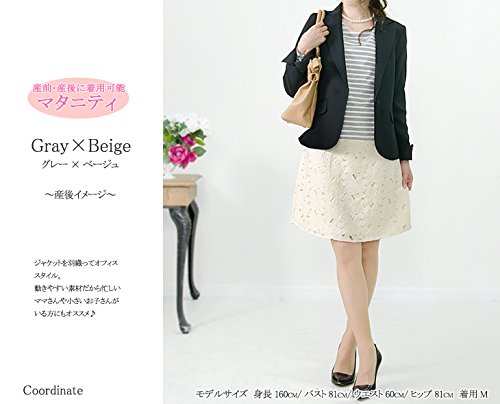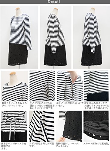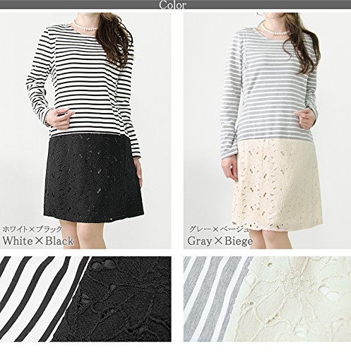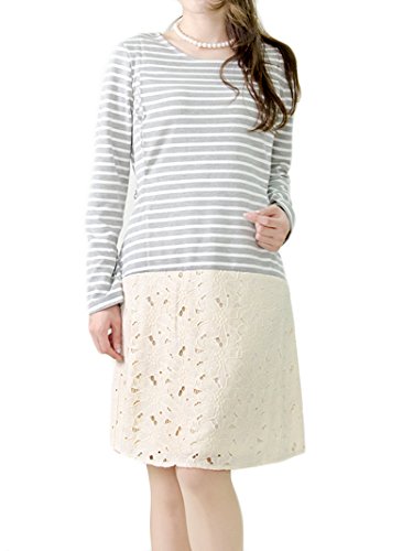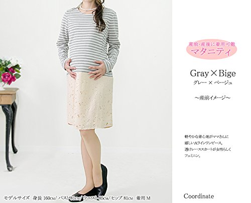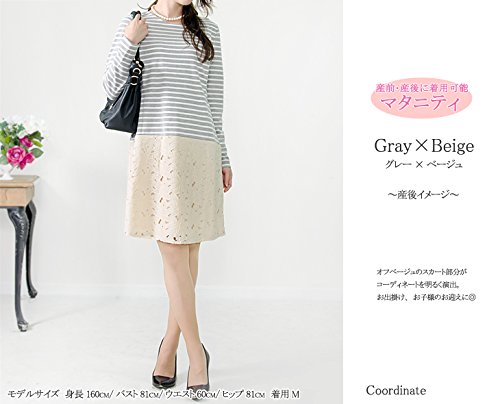 (アッドルージュ)Add Rouge 授乳口付き ウエストリボンベルト付きポンチ素材 レース切替ワンピース c584245 Q1 L グレー×ベージュ
