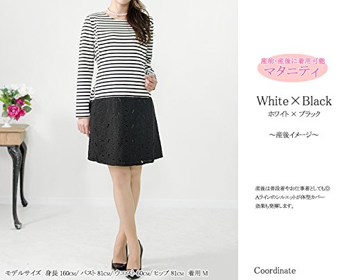ストレッチの効いたカットソーTシャツと、ハリのあるストライプ柄のスカートがドッキングしたデザインのマタニティーワンピース。