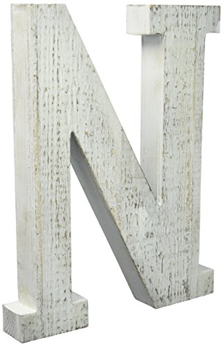 Adeco木製吊り壁文字「N」 – ホワイト装飾壁のリビングルームの文字、ベビー名前とベッドルーム飾り、ホワイトウォッシュ