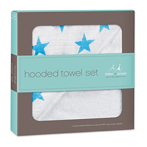 aden + anais (エイデンアンドアネイ) 【日本正規品】 NEWフード付きテリータオルとウォッシュクロスセット fluro blue hooded terry towel & muslin washcloth set new-3038