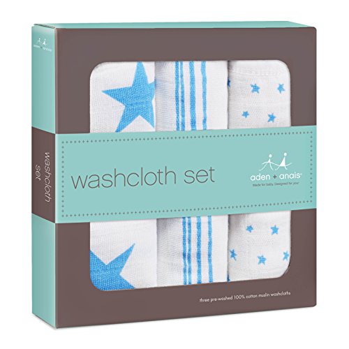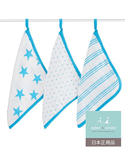 aden + anais (エイデンアンドアネイ) 【日本正規品】 ウォッシュクロスセット 3枚セット fluro blue 3pack-3053