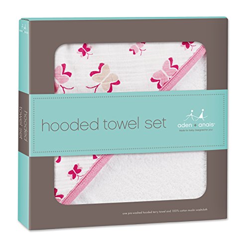 aden + anais (エイデンアンドアネイ) 【日本正規品】 NEWフード付きテリータオルとウォッシュクロスセット princess posie hooded terry towel & muslin washcloth set new-3035
