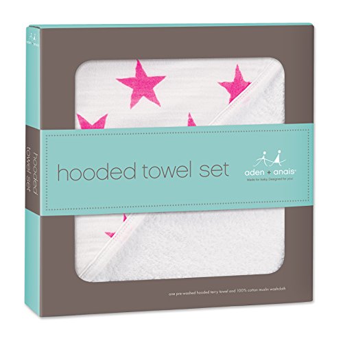 aden + anais (エイデンアンドアネイ) 【日本正規品】NEWフード付きテリータオルとウォッシュクロスセット fluro pink hooded terry towel & muslin washcloth set new-3037