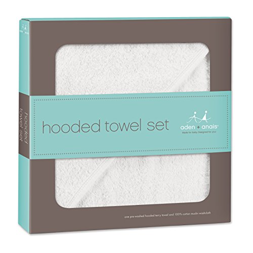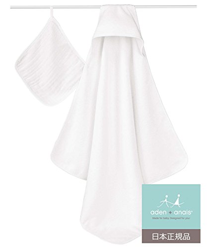 aden + anais (エイデンアンドアネイ) 【日本正規品】 フード付きテリータオルとウォッシュクロスセット water baby hooded terry towel & muslin washcloth set -3028