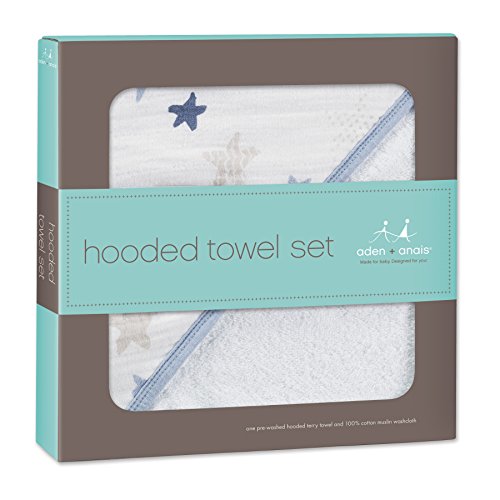 aden + anais (エイデンアンドアネイ) 【日本正規品】 NEWフード付きテリータオルとウォッシュクロスセット rock star hooded terry towel & muslin washcloth set new-3060