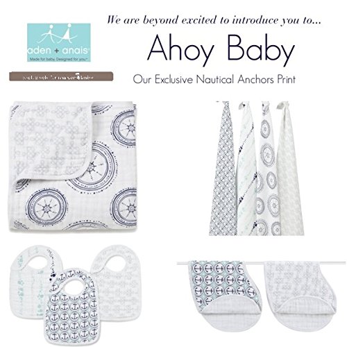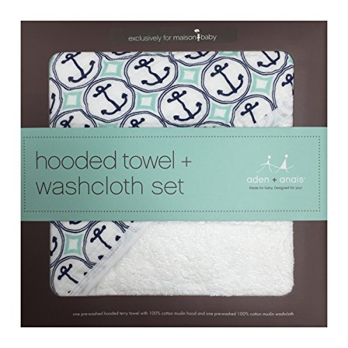 aden + anais Muslin Hooded Towel & Washcloth Set, Ahoy Baby Nautical Anchors by aden + anais