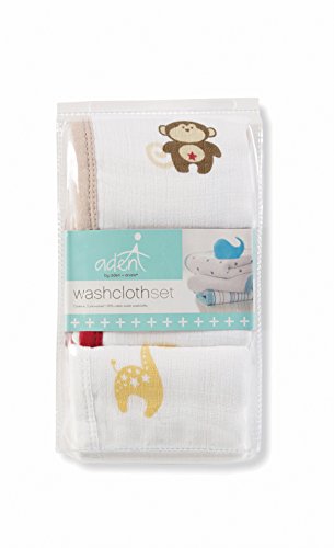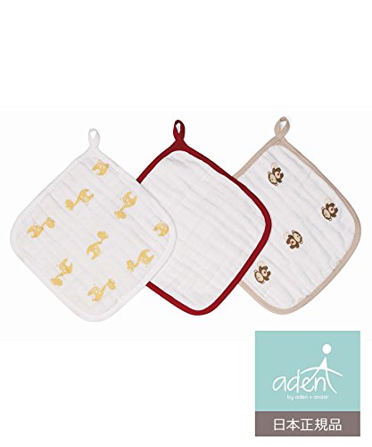 aden by aden + anais (エイデン バイ エイデンアンドアネイ) 【日本正規品】モスリンコットン ウォッシュクロスセット3枚入り safari friends J655
