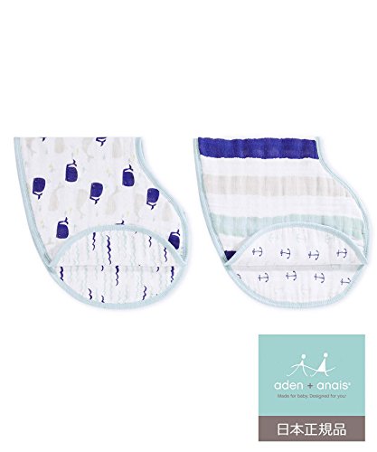 aden + anais (エイデンアンドアネイ) 【日本正規品】 モスリンコットン バーピービブ 2枚セットhigh seas - whales + anchors - 7043