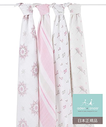 aden + anais (エイデンアンドアネイ) 【日本正規品】 モスリンコットン おくるみ 4枚セット for the birds swaddle 4 pack-2035