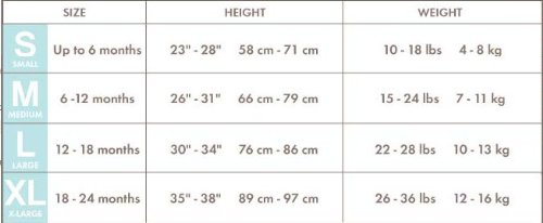 largeサイズの対象年齢は12-18ヶ月まで、身長は76-89cm、体重は10-13kgまで。